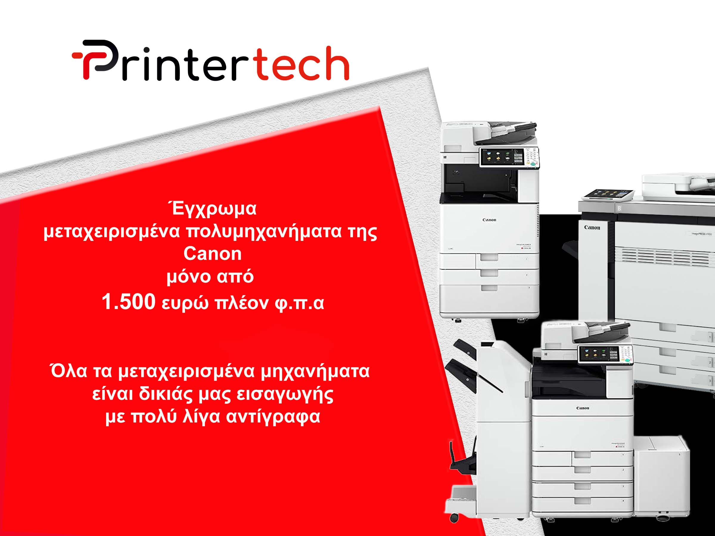 Πολυμηχανήματα Canon Μεταχειρισμένα έγχρωμα πολυμηχανήματα της Canon επιλεγμένα από τους πλέον ειδικούς στο professional, και production printing Είναι η καλύτερη επιλογή Γιατί τα μεταχειρισμένα πολυμηχανήματα